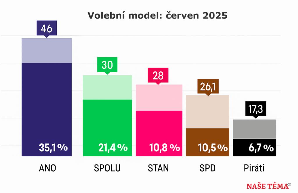 Podle nejnovějšího volebního modelu agentury Ipsos by hnutí ANO pod vedením Andreje Babiše v podzimních volbách dominovalo s podporou 35,1 % voličů. Vládní koalice SPOLU by získala 21,4 %, což znamená drobný nárůst oproti předchozímu měření.