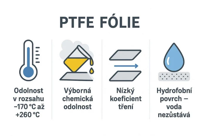 Hlavní výhodou těchto fólií je široký rozsah pracovních teplot. Standardně fungují v rozmezí od -170 °C do +260 °C a krátkodobě vydrží i teploty okolo 300 °C. Tuto stabilitu zajišťuje zvláštní molekulární struktura, kde atomy fluoru vytvářejí hustý ochranný plášť kolem uhlíkového řetězce. Tato vazba patří k nejsilnějším v organické chemii, a proto je PTFE velmi chemicky odolný – nereaguje téměř s žádnými kyselinami, zásadami ani rozpouštědly.