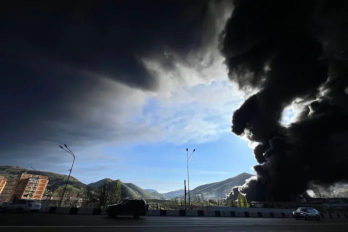 Podle ruských úřadů k požáru došlo v důsledku dopadu trosek sestřeleného dronu, nikoli přímého zásahu. To se však neshoduje s dostupnými záběry, na nichž je vidět rozsáhlý požár ve více částech areálu.